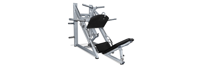 - Lower the safety bars holding the weighted platform and fully extend your legs